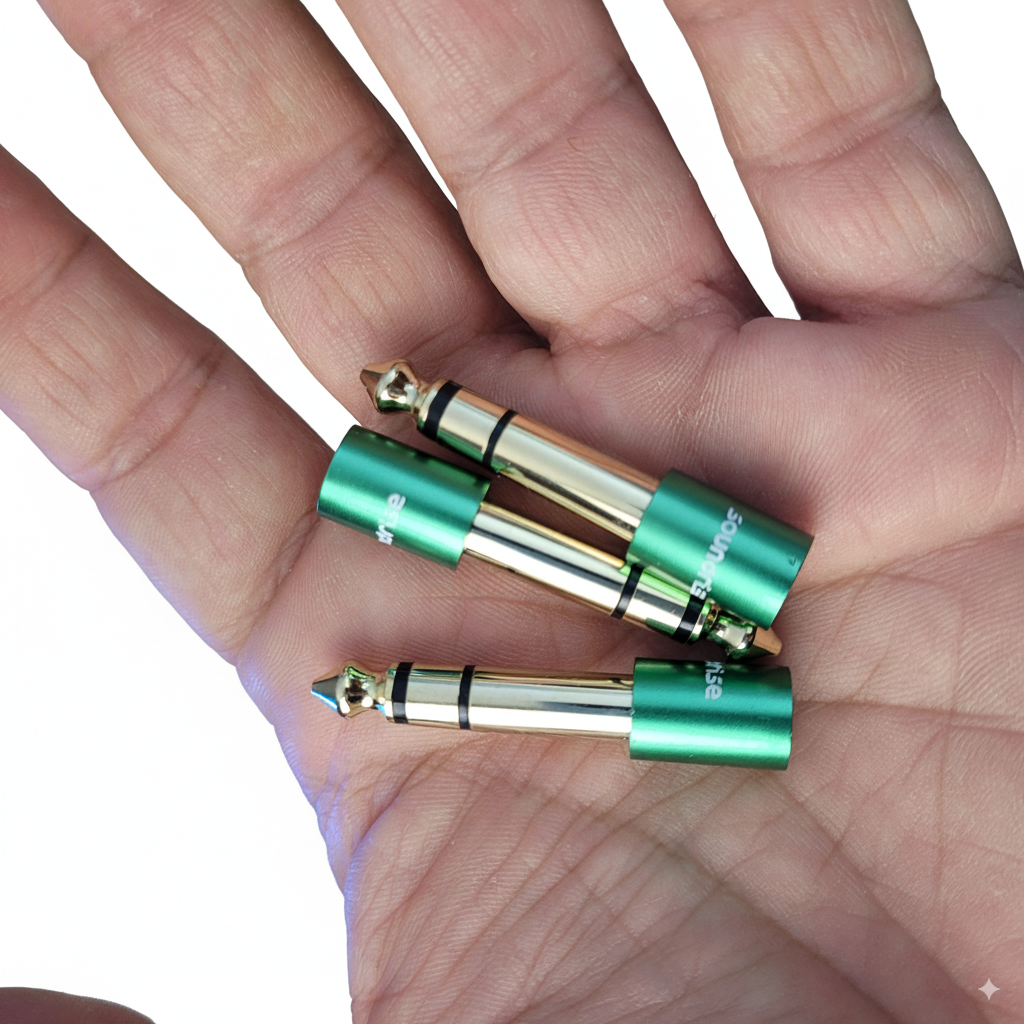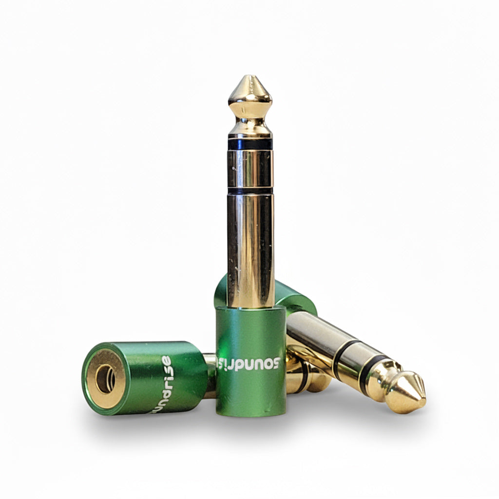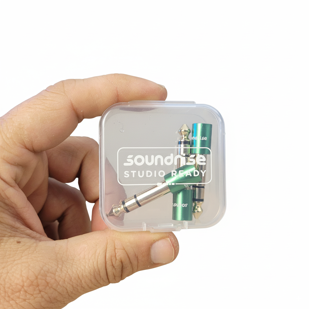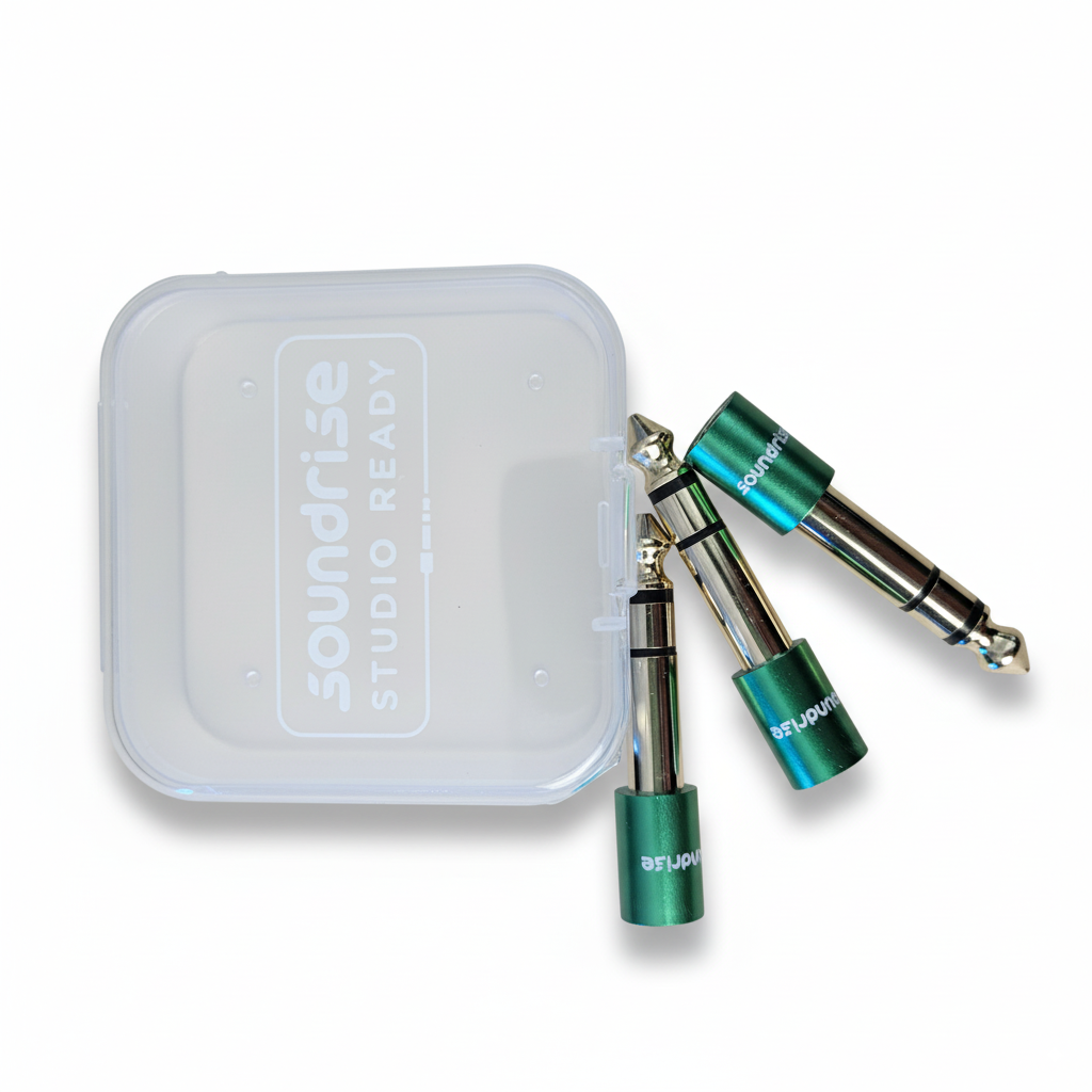 3-Pack Soundrise 1/4" TRS Audio Adapters – Green Ceramic – Gold-Plated, Studio Quality with Resealable Travel Case